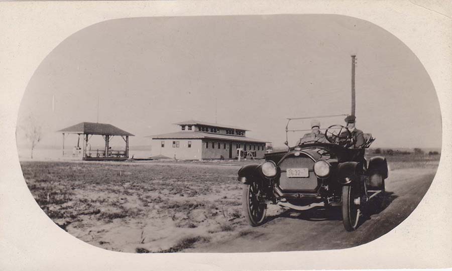 The first roadway in the park started at main street, then drove to the channel, circled the original pavilion and returned to Main St. along the edge of the lake.