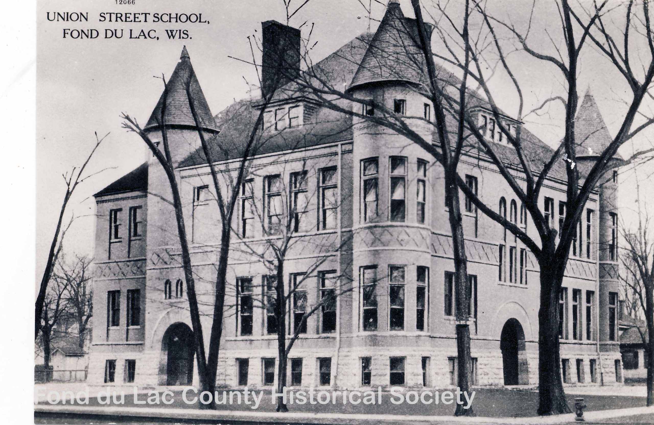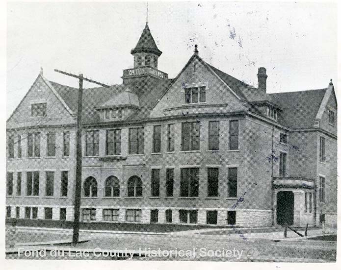 Fond du Lac high school, rebuilt in 1873 after fire destroyed the original school building. In 1925 an auditorium was added to the school, and it became Roosevelt Junior High School. Roosevelt was torn down Chegwin School built in its place