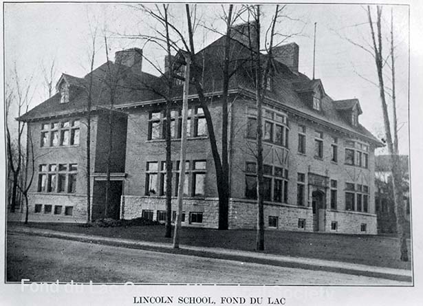 The first school built in the city of Fond du Lac, was a grade school, built in 1843. It was located on Main Street, between Second and Third Streets, on land owned by Mason Darling.