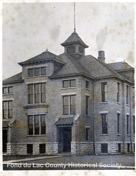 January of 1859 marked the beginning of high school education in Fond du Lac. Classes were conducted in rented rooms at the Sewell store on N. Main Street between Johnson and Merrill. The first instructors at the school, Edwin C. Johnson and Miss M.S. Merrill, had 100 children under their guidance. The first high school, constructed on Merrill Ave in 1865. A fire destroyed the building in 1873. The school was rebuilt.