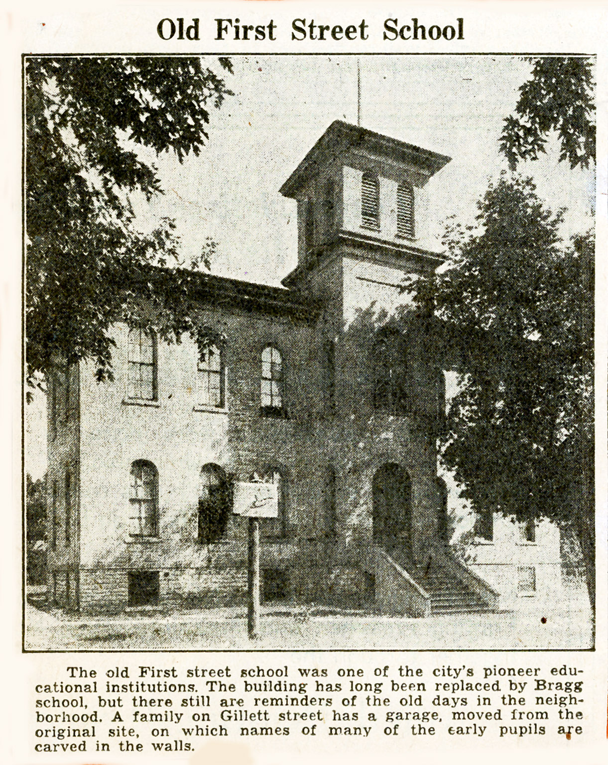 Bragg school was constructed in 1914, at a cost of $47,710. The school was dedicated to local resident and Civil War General Edward S. Bragg, and was built on the grounds of the old First Street School.